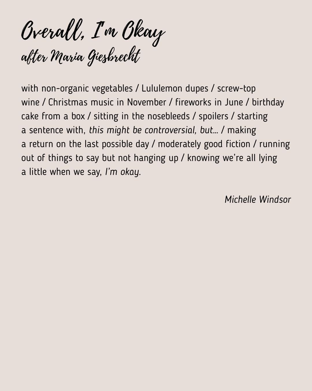 Issue 29December 2025+7Michelle Windsor, Amy Grass, Tania's Butterflies, and 8 othersDec 01, 20253697Sharehttps://www.instagram.com/gina.r_____/SharePart-Time Poets is a reader-supported publication. To receive new posts and support our work, consider becoming a free or paid subscriberSubscribePreviousNext